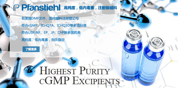“熱烈祝賀Pfanstiehl的注射級甘氨酸Glycine(G-140)喜獲CDE登記號F20250000403, 這是Pfanstiehl產品獲得的第18個CDE登記號!”甘氨酸在醫藥輔料制劑中應用廣泛,, 可作為緩沖劑,增溶劑,穩定劑等,具有諸多優勢。Pfanstiehl秉承一貫高品質理念,為滿足全球生物制藥行業對于高品質甘氨酸的需求,隆重推出的注射級甘氨酸Glycine (G-140), 具有超高純度,超低內毒素,超低金屬殘留的特點,單獨檢測29種金屬離子,并且新增DNA,RNA,DNA酶,RNA酶和脂肪酶,亞硝酸鹽等多項質量指標的檢測,符合多國藥典規定(USP, EP, BP, JPE, ChP),可用于生物治療性藥物和疫苗的生產。產品信息:· 產品名稱:Glycine, High Purity, Low Endotoxin, Low Metals, USP, EP, BP, JPE, ChP (G-140)· 中文名稱:甘氨酸· 分子式:C2H5NO2· 分子量:75.07 g / mol· CAS號:56-40-6· 產品貨號:G-140產品特點: · 超高純度,超低內毒素,超低微生物含量,超低金屬雜質殘留· 質量指標新增DNA,RNA,DNA酶,RNA酶,脂肪酶和亞硝酸鹽檢測· 符合多國藥典:USP, EP, BP, JPE, ChP· 符合ICH Q3D標準· 符合GMP標準· 已獲DMF和CDE登記號 產品應用:· 緩沖劑· 穩定劑· 增溶劑如果您對Pfanstiehl注射級別Glycine G-140感興趣,歡迎聯系Pfanstiehl 中國區代理商北京西美杰科技有限公司獲得如下詳細的產品概況說明文件和測試樣品。Pfanstiehl Inc.最新產品系列如下,歡迎聯系北京西美杰科技有限公司獲取100g裝免費樣品。北京西美杰科技有限公司為Pfanstiehl中國代理,為客戶提供完善的技術支持與售后服務。歡迎撥打西美杰客服電話400-050-4006或者登陸網站www_xmjsci_com.029jh.com.cn了解更多信息。 更多>